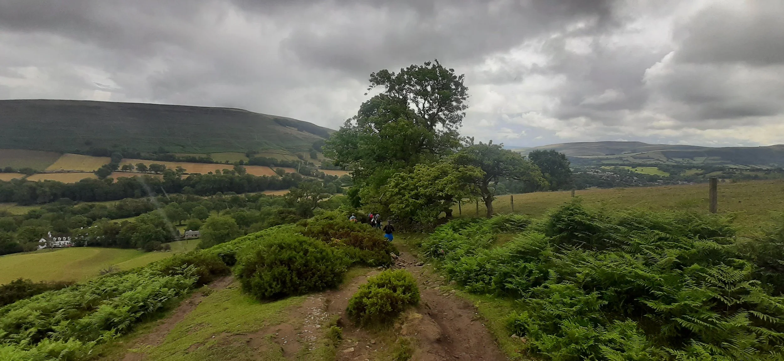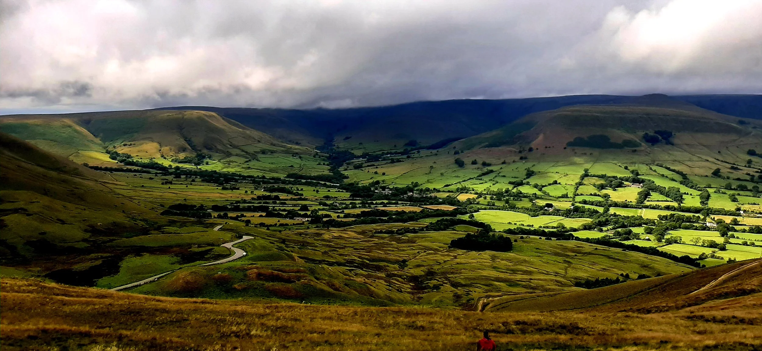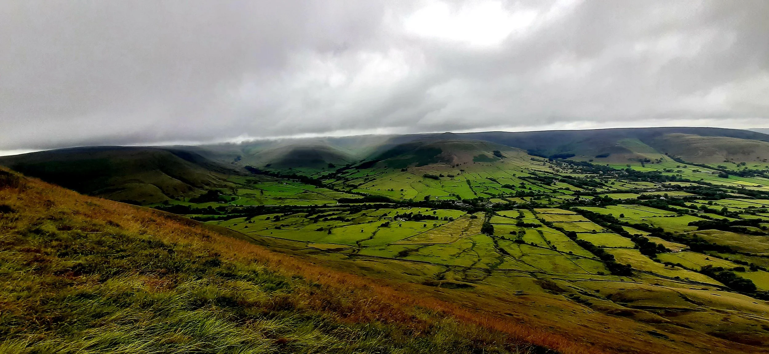 As we descended towards Hope village, the view of the valley and the hills ahead stretched out in front of us. The weather changed every 5 minutes and as quickly as you could put your waterproofs on, it stopped raining. At the bottom of the hill, there is a short section on road and then a country lane, before you take a right and head uphill once more.