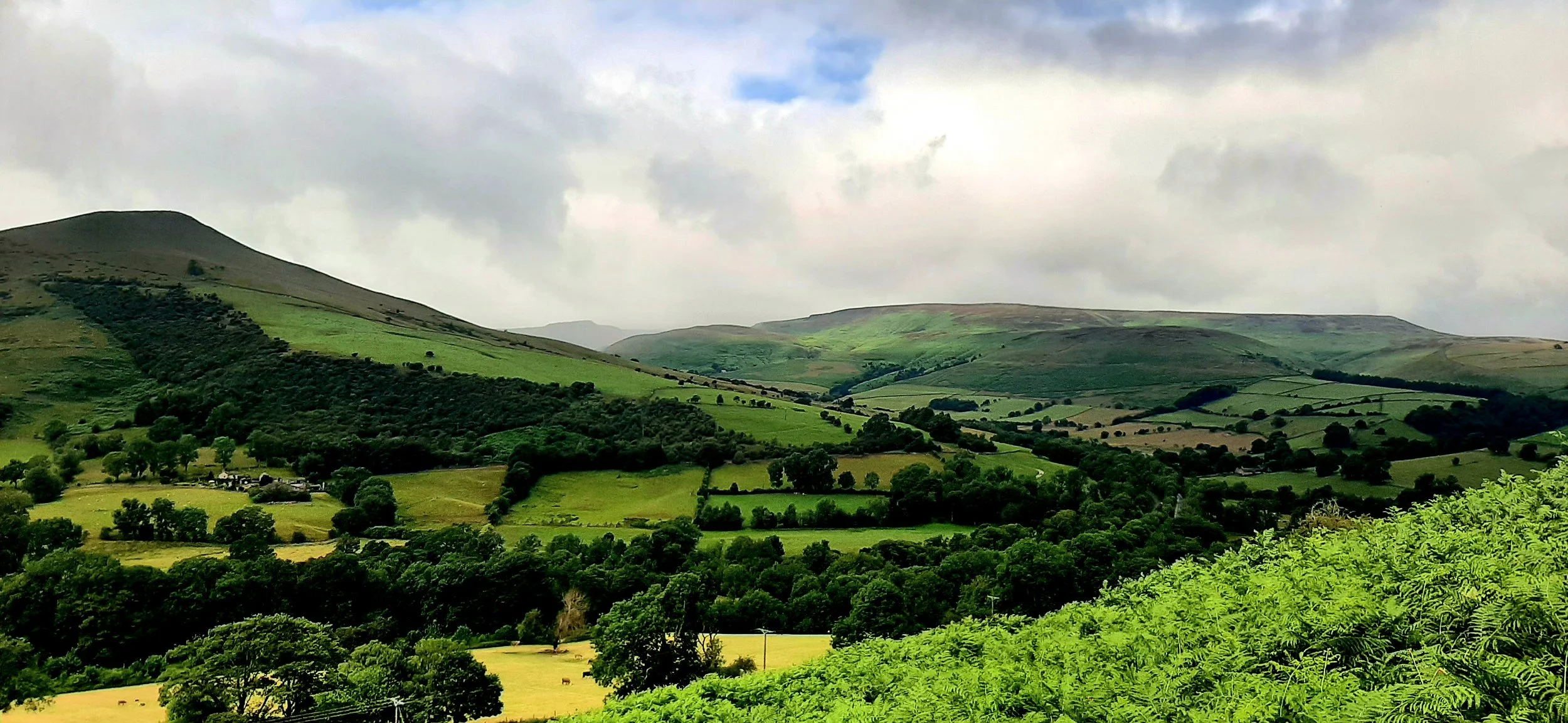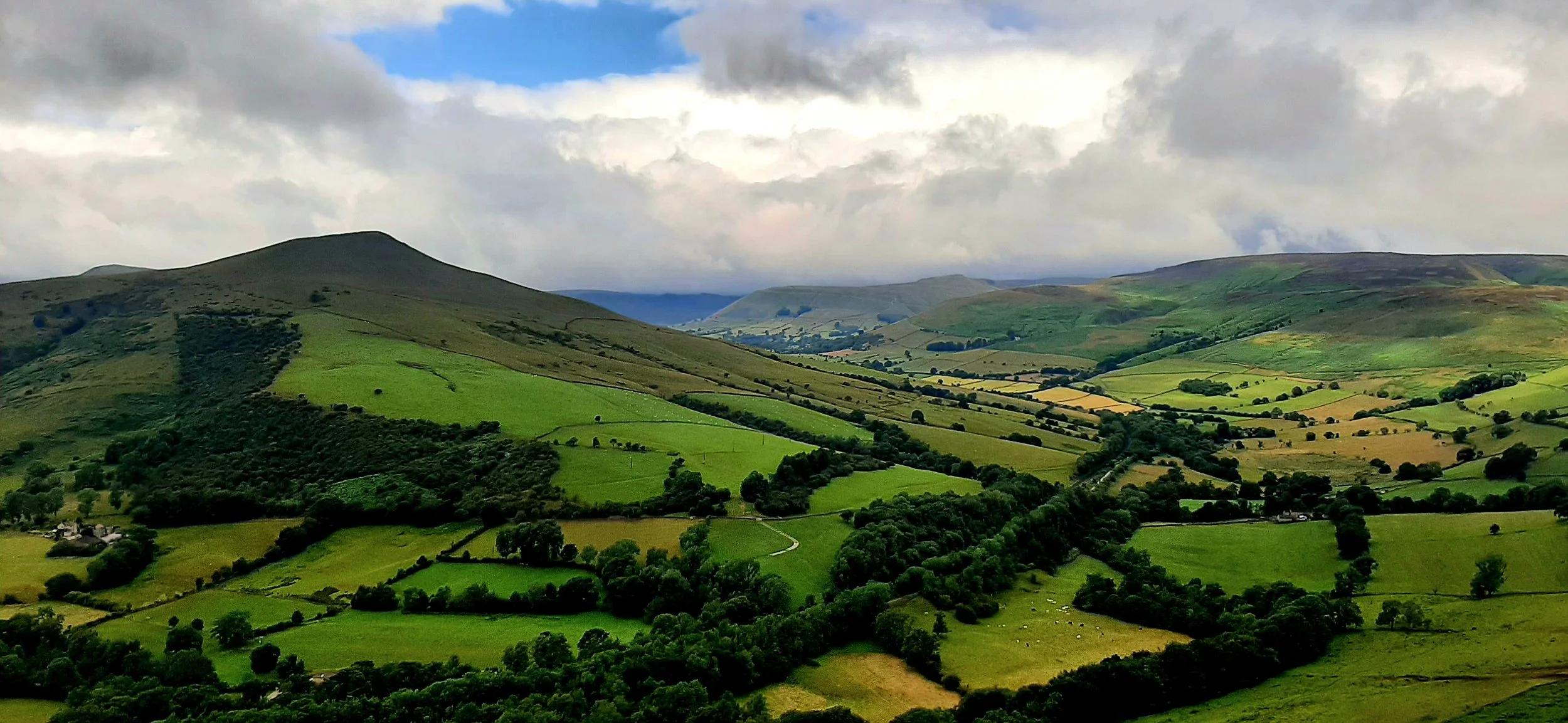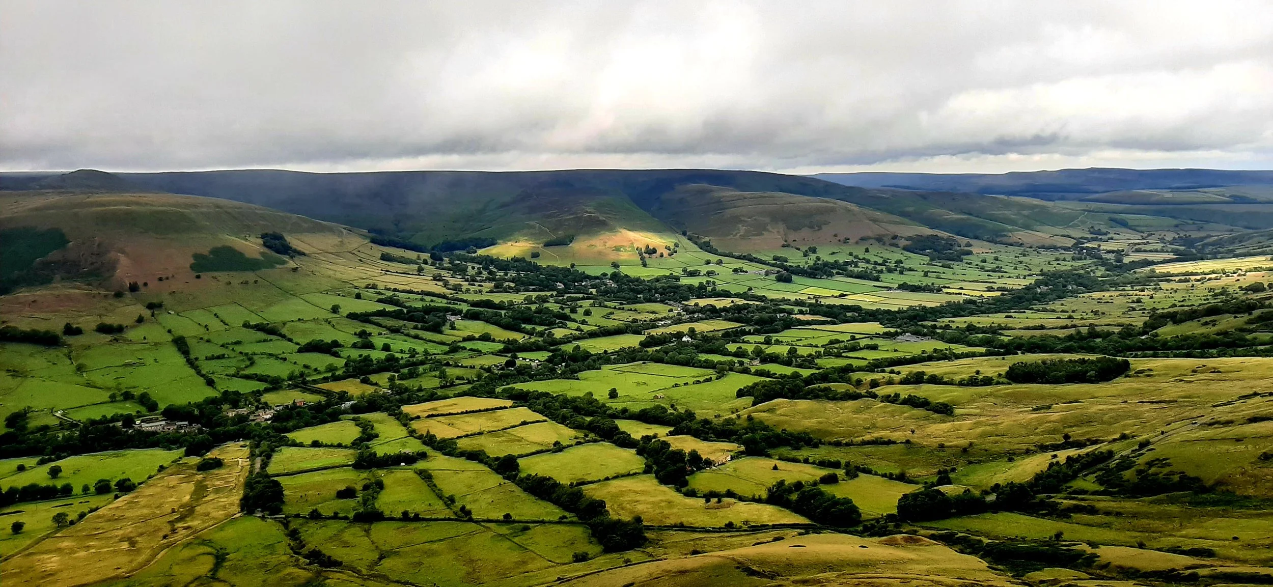 As we descended towards Hope village, the view of the valley and the hills ahead stretched out in front of us. The weather changed every 5 minutes and as quickly as you could put your waterproofs on, it stopped raining. At the bottom of the hill, there is a short section on road and then a country lane, before you take a right and head uphill once more.