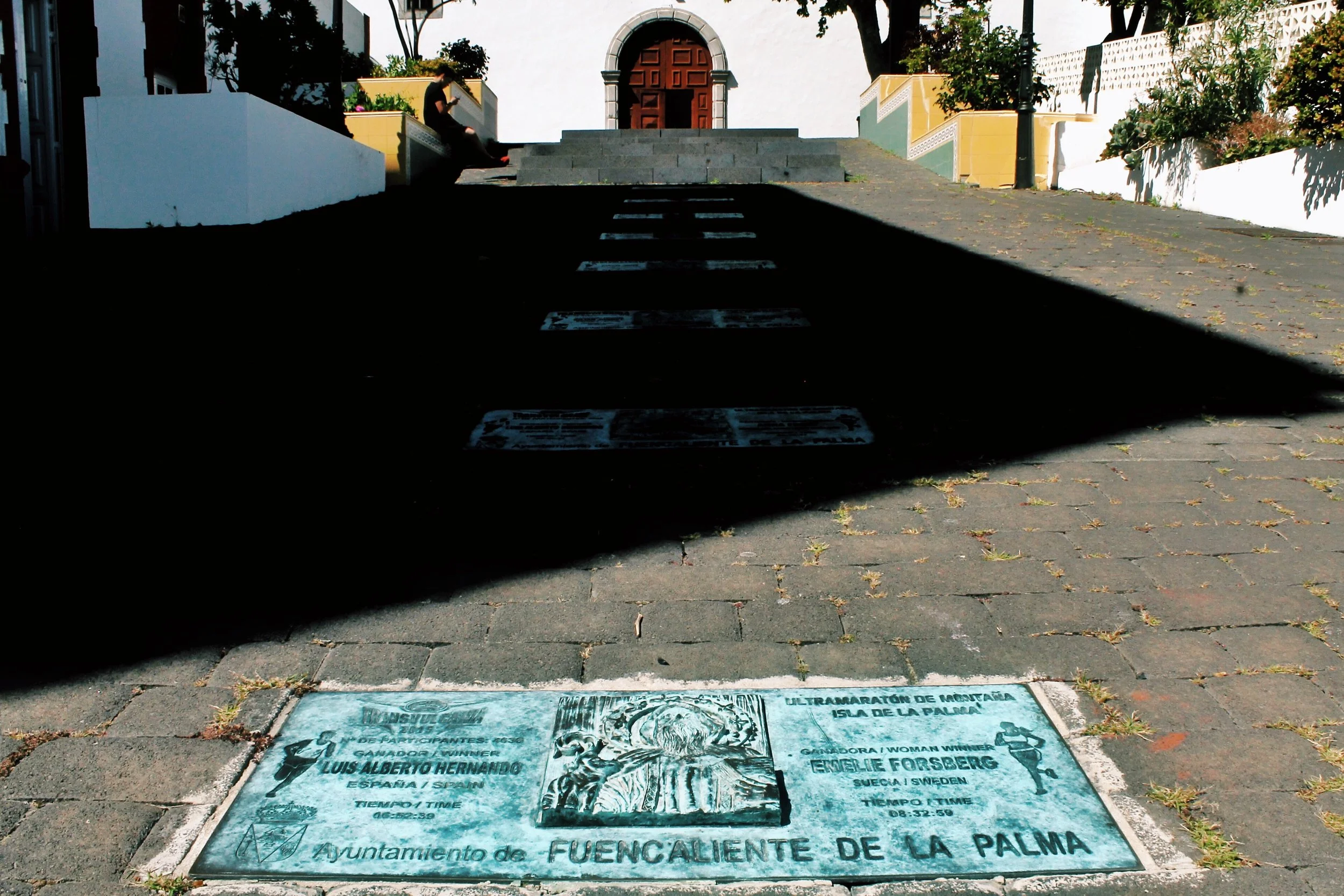 We reached the first aid station at Los Canarios and the whole village was out on the streets, bunting up, banging those plastic air filled tube bangy things together. This is their Tour de France. They even have a plaque to commemorate the winners of the male and female races each year.