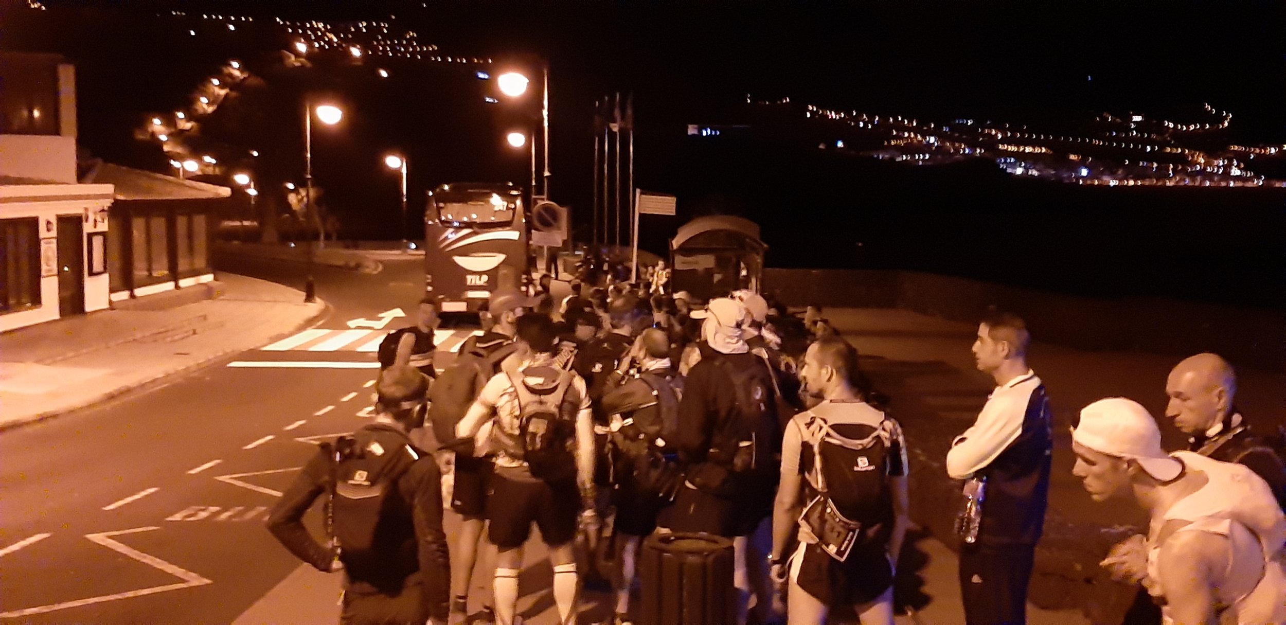 So, the 2.30 alarm goes off, which isn’t that welcome, as it’s the second time we’d got up so early in 3 days. A quick breakfast and then a quick walk to the bus stop, accompanied by a lovely chap from Quito, Ecuador, especially for the race. There’s a queue and it needs 5 buses to get everyone there just from our part of the island. It’s a 45 minute journey and it’s probably best that it was in the dark, as I imagine we were flirting to cliff edges again.
